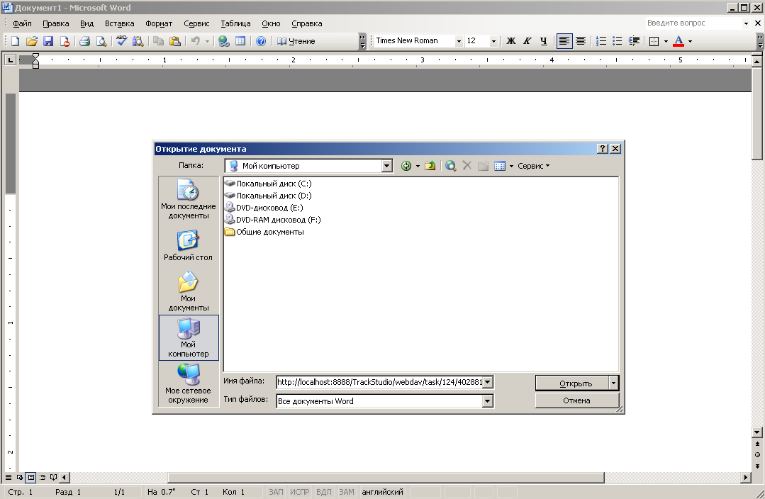 Далее в редакторе Microsoft Word в меню открытия файла нужно вставить эту ссылку и открыть файл
