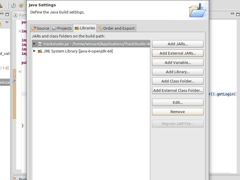 - Выберите библиотеку trackstudio.jar (webapps/TrackStudio/WEB-INF-lib/trackstudio.jar)